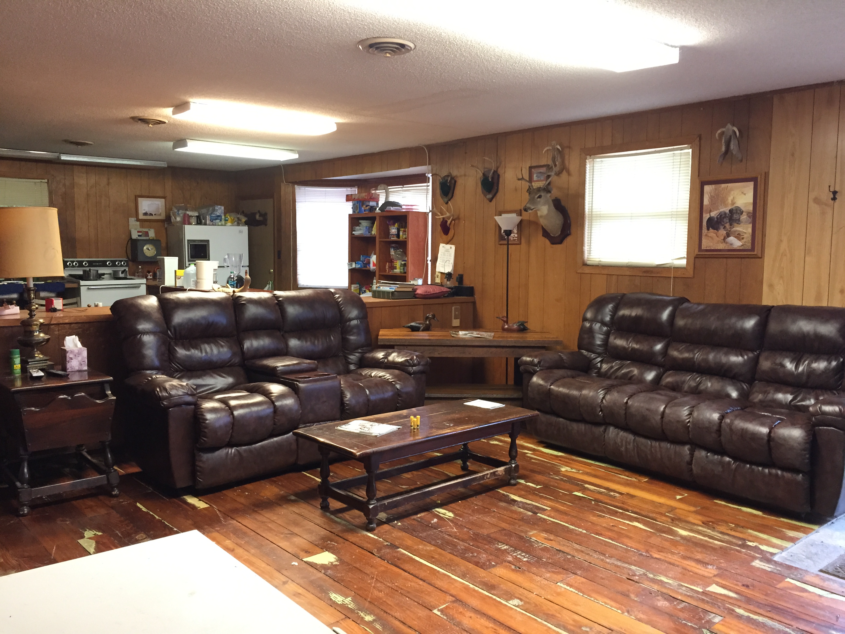 | Our 1500 sq.ft. fully furnished brick camphouse is located on the premises with central air/heat, bar, kitchen, bathroom, shower and bunks for 7 people. Also, 5000 sq.ft. of locked warehouse storage next door holds all ATV's, trucks or trailers. The camphouse has a concrete parking lot for 10 vehicles and is located right on the highway, making it easily accessible. | |